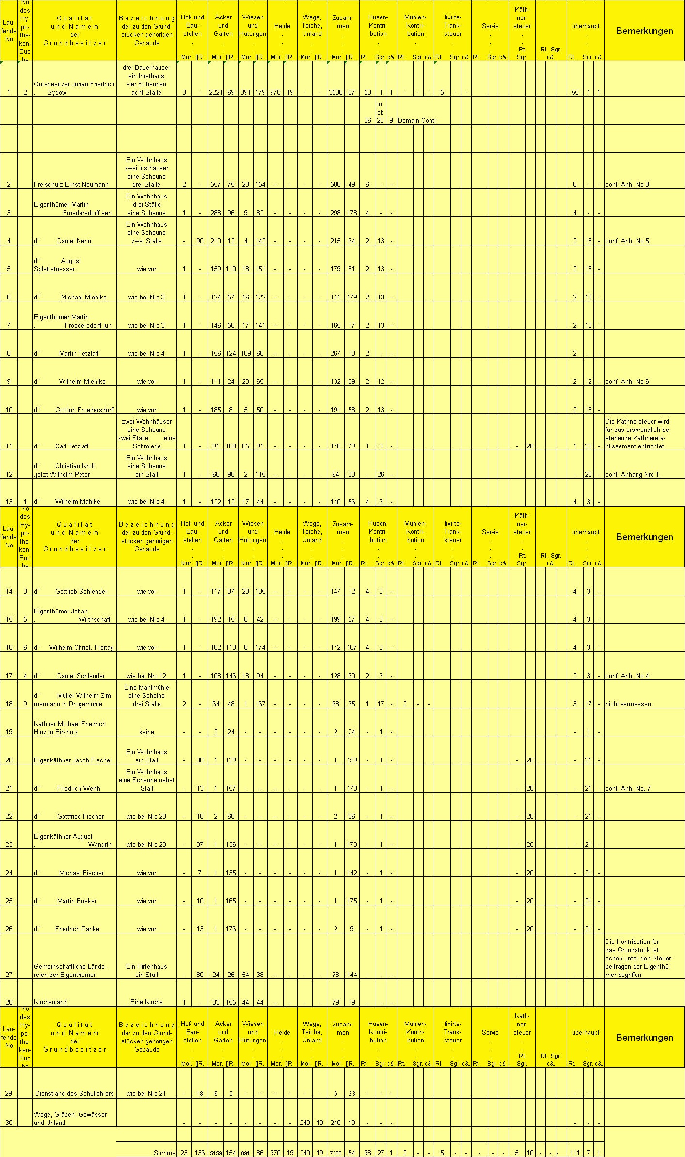 Grundsteuer-Kataster 1841 aus dem Kreise Deutsch Krone des adeligen Dorfes Gollin zum Hauptgut Salm gehörig |