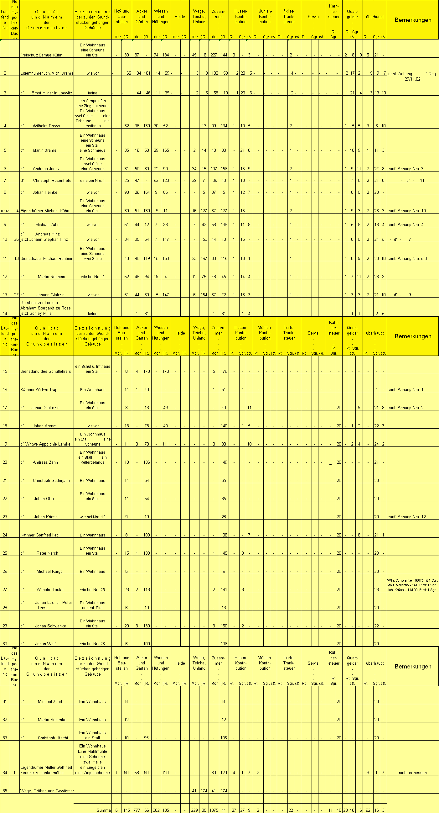 Die Originale des Katasters befinden sich heute im Geheimen Staatsarchiv Preußischer Kulturbesitz in Berlin-Dahlem. Klaus Utecht, Wandlitz(k.utecht@yahoo.de) erstellte diese Abschrift der Klassifikationsanschläge von Kappe und stellte sie uns dankenswerter weise zur Verfügung.