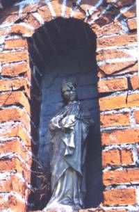 Im Kreise Deutsch Krone sind insgesamt sieben Kirchen der allerseligsten Jungfrau geweiht, nämlich die Marienwallfahrtsorte Schrotz und Mellentin, ferner Klawitterdorf (Mariä Heimsuchung), Tütz (Mariä Himmelfahrt), Zippnow (Mariä Geburt), Hasenberg (Mariä Verkündigung) und auch die Kirche in Strahlenberg (Mariä Heimsuchung). Die kath. Bewohner in Strahlenberg feierten am Sonntag nach dem 2. Juli das Fest der Mariä Heinsuchung. Das Foto rechts zeigt das Marienbild an der Wegekreuzung am Ortsausgang von Strahlenberg Richtung Neustrahlenberg und Stibbe. Foto: Schulz, Joachim, Lingen, 1999 |