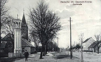 Rederitz was a village in the north of the county Deutsch Krone with 1454 inhabitants in the year 1939. The location had an own kath. parish. The ev. belonged to Zippnow. Also Rederitz had a registration and district office. The jurisdiction was found in Jastrow. There were 134 farms at this time. Today Rederitz is polish and called Nadarzyce.