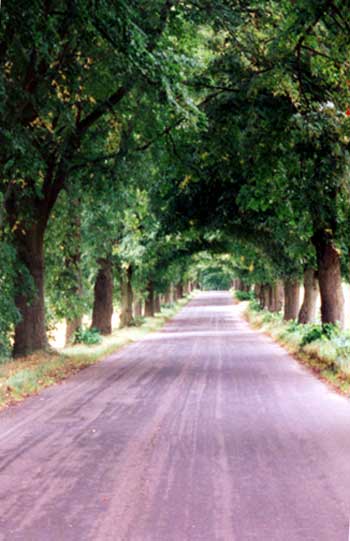 Die Straßen in das Dorf Mit Tütz ist Strahlenberg durch eine Chaussee verbunden; Alleebäume säumen die betonierte Straße, die auch einen sog. Sommerweg aufweist. Die Nachbardörfer erreicht man auf Landstraßen. Der Weg nach Ruschendorf ist nur im Dorfbereich gepflastert und führt über einen schmalen Bergkamm. Dieser wurde während des II. Weltkrieges mittels fest im Straßenkörper befindlicher Minen als Panzersperre genutzt. Diese betonierten Straßenabschnitte sind heute noch vorhanden. Folgt man dem Weg weiter Richtung Ruschendorf, wird dieser immer schlechter und geht schließlich in einen sandigen Feldweg über. Man kommt an wunderschön gelegenen kleinen Teichen vorbei. Diese befinden sich auf nassem Wiesengrund, umgeben von Birken. Zum Teil ist der Boden hier sehr moorig. Folgt man dem Weg an der Gabelung in Richtung Mehlgast, kommt man an einer größeren, aus mehreren Teichen bestehende, Fischzuchtanlage vorbei. |