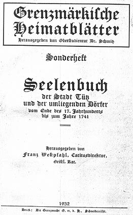Seelenbuch der Stadt Tütz und der umliegenden Dörfer vom Ende des 17. Jahrhunderts bis zum Jahre 1741 | |||